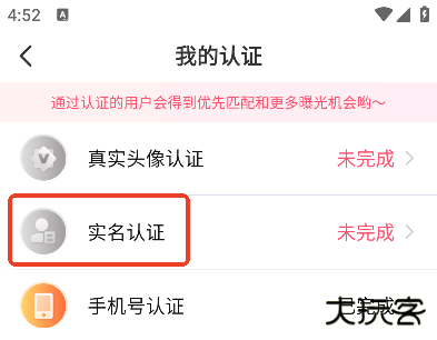 3、选择实名认证