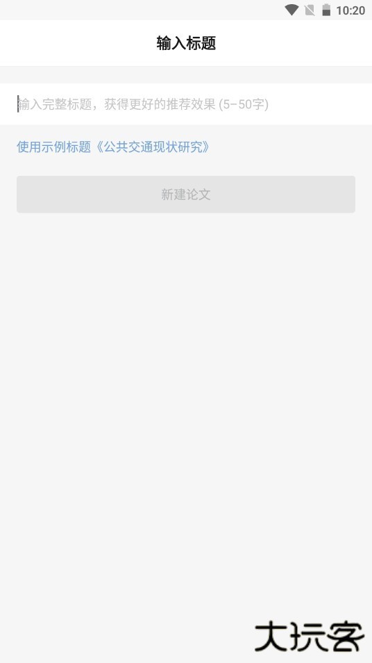 1、首先,用户在本站下载并安装好app后,打开进入,成功登录以后,输入完整的标题(5—50字),然后点击【新建论文】;