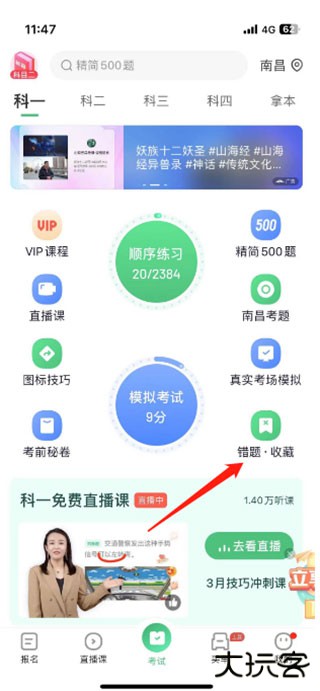 1、用户能够先打开应用,在考试界面点击错题收藏。