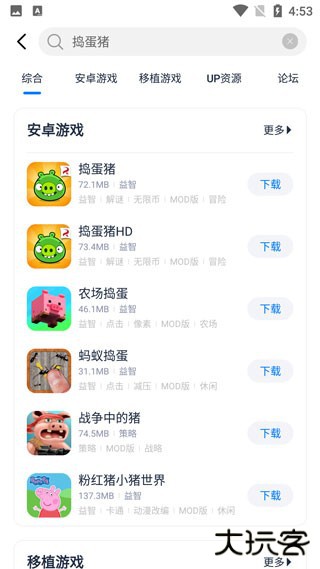 3、在搜索结果中点击要下载的游戏右侧的下载即可