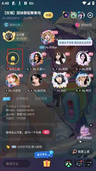8、点击一个你想了解的房间随后点击上麦就可以开始和各种各样的小姐姐聊天啦