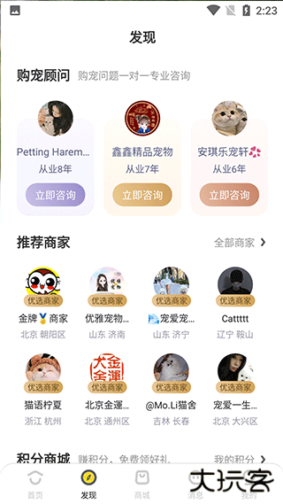 通过发现页联系专业顾问,实时解答购宠与养宠相关问题。