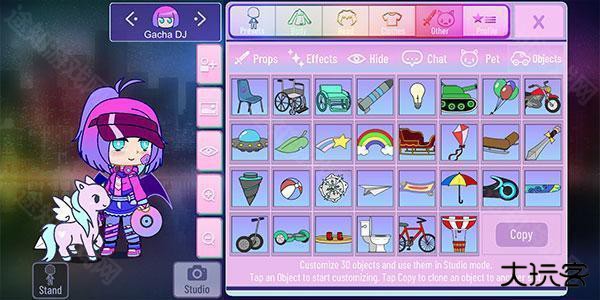3、超多免费装饰和选项可以选择,自由切换,为你的加查人物打造完美造型,选择宠物和炫酷武器!