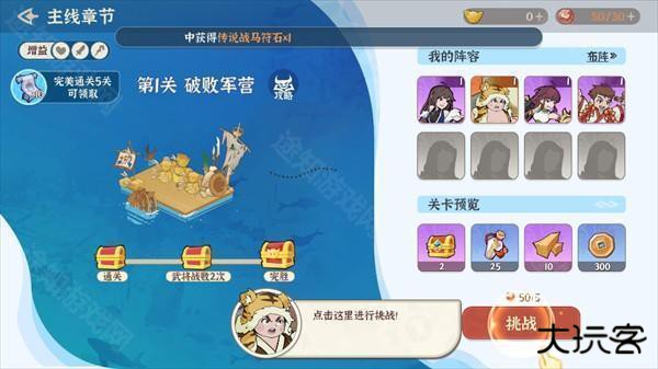 完美通关可领增益奖励,通关、武将战败 2 次、完胜对应宝箱有不同资源 。
