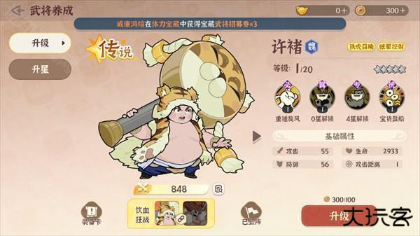 新手优先升级核心武将(如许褚),消耗金币提升等级,升星可解锁更强技能,强化战力 。