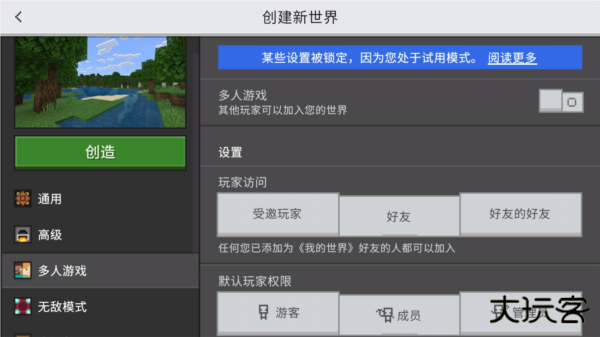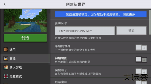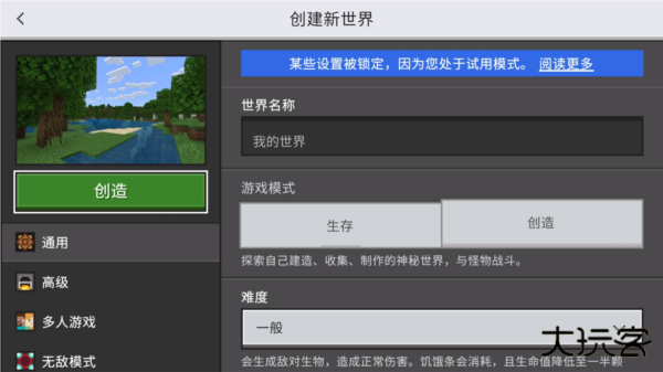 2.在创建新世界页面中,由于是试玩版,所以你只能创建生存模式,无法新建创造模式。