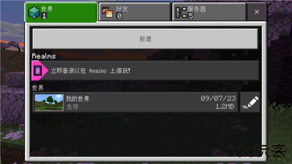 1.Minecraft Trial版本的主界面和正常的基岩版本相同,首先我们点击新游戏,然后点击新建世界。