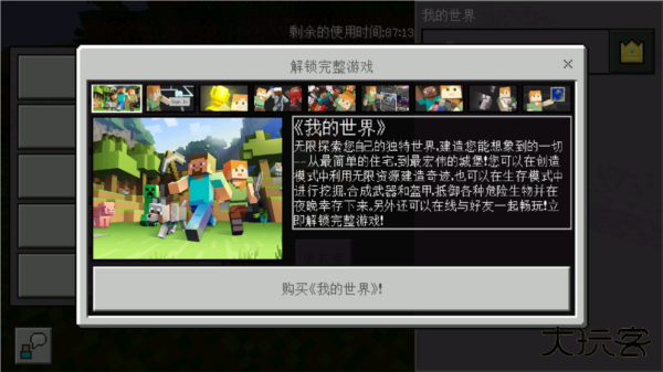 8.如果你觉得游戏不错,你可以直接点击解锁完整版游戏来购买正版的Minecraft。