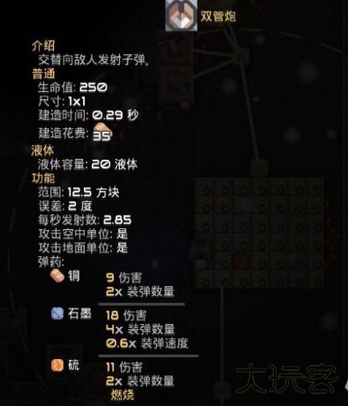 这游戏的炮塔开火不像其它游戏,需要用弹药供应,可以点建造右边的小问号查看这个炮塔用的哪个弹药