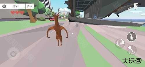 3、玩家将在游戏中扮演一只疯狂的鹿,在城市里冒险,这只鹿一点也不普通;