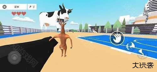 有人可能就疑惑了,奶牛去哪找?别急,整个地图里—共三只奶牛,复活的时候看见远处最大的牛,我们向那里跑过去,就会看见篮球场,里面有两个奶牛在玩耍,随便抓一只走就可以了。篮球场附近还有一只在外面的奶牛,抓这只去充数当然也有没有问题啦。最大那只奶牛我们抬不起来,所以就不用尝试去搬运它了。