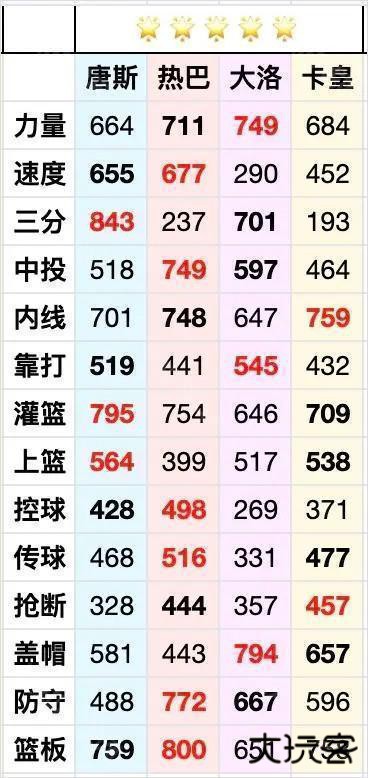 从专属来看,唐斯具备了更多的出手空间和机会,热巴是补防能力的体现,大洛是盖帽和三分,卡皇是进攻篮板与篮下能力;而从主宰来看,唐斯进一步加强三分,卡皇进一步加强篮板是没问题的,大洛站扣建立在盖帽成功的基础上,触发有一定难度,且站扣适合蹲坑型,而热巴的主宰相对鸡肋一点,这两人的主宰和自身的相性不是很搭