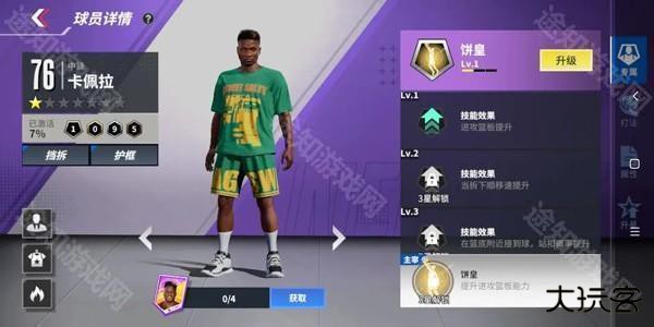 专属技能:能够提升突破后扣篮的成功率以及增强抗盖帽能力。