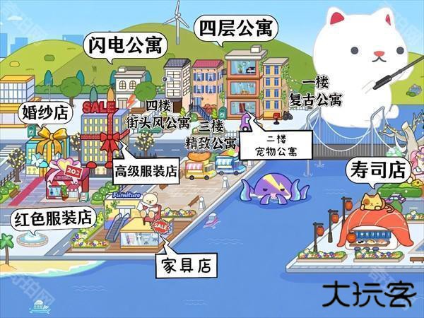 7、云朵公寓、小猫公寓、印刷厂、外卖店、电器城。