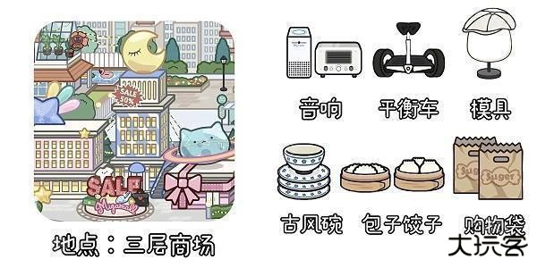 10、大摆锤、游乐场、糖果屋、海洋馆、婚礼殿堂、玩偶商店、旋转飞椅。