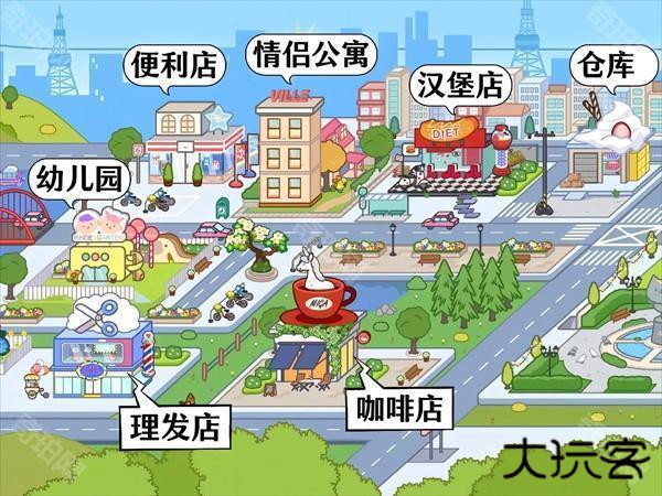 14、幼儿园、理发店、咖啡店、仓库、汉堡店、情侣公寓、便利店。