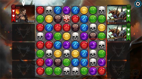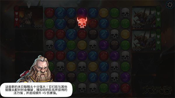 5、骷髅头上有数字的配对时会爆炸,增加你的队伍获得的法力值,并造成额外的伤害;