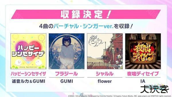 大部份乐曲对应由《世界计画》角色及虚拟歌手演唱的「SEKAI ver.」,以及由虚拟歌手原唱版本的「原曲ver.」,小部份乐曲更收录了Crypton 社以外角色的原唱版本。