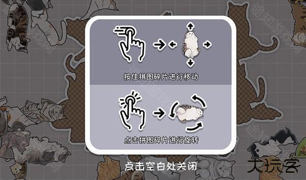3、开始挑战后,玩家可以通过按住碎片移动,点击碎片旋转来控制猫咪碎片进行拼图。