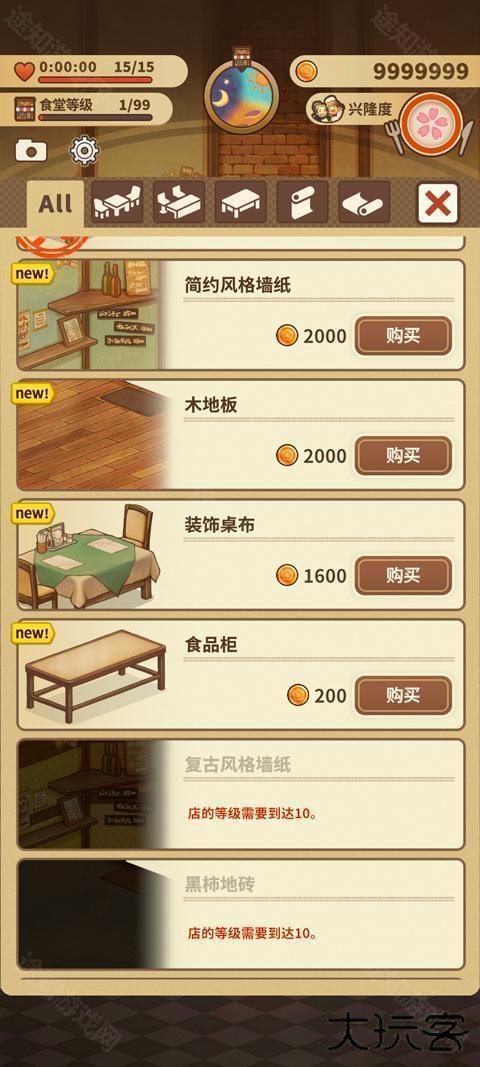 5、另外,玩家赚取的金币可用来购买介绍新的餐厅布置,以及设备等。