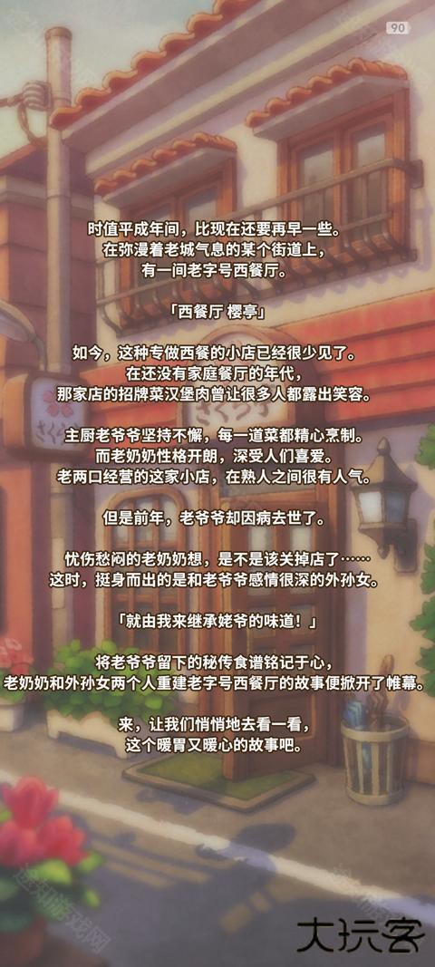 1、打开众多回忆的西餐厅游戏,点击屏幕开始游戏;