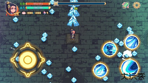 2.进入游戏开始探索,滑动摇杆移动,右边释放技能。