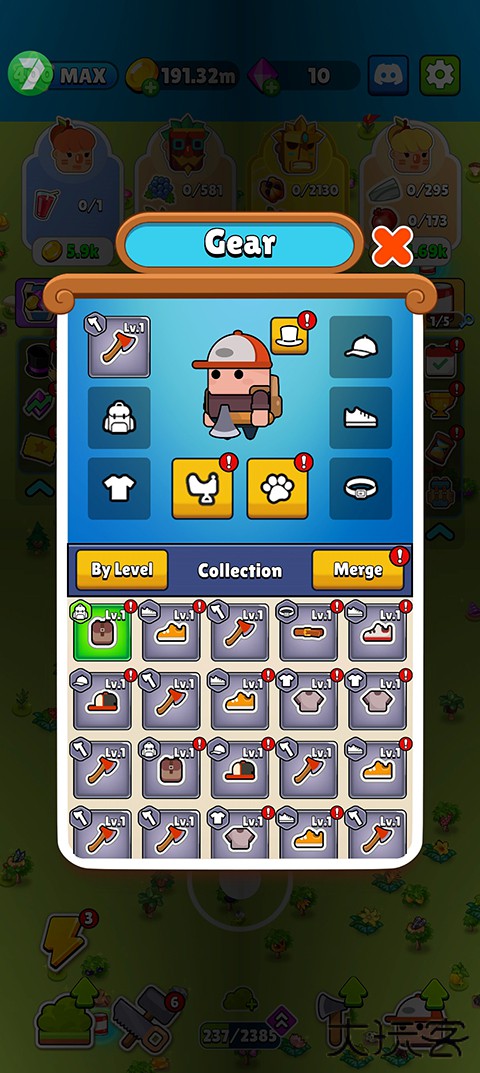 4、为了提高角色的效率,我们可以点击下方的斧头标志装备更加强力的标志;