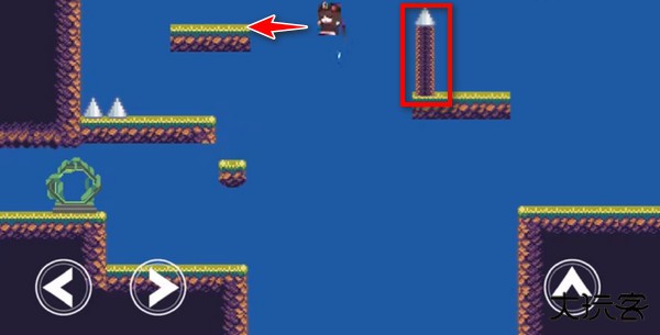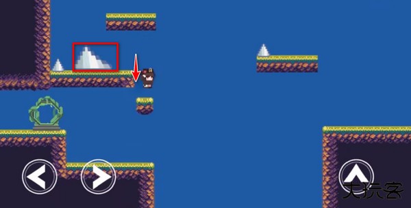 2、注意,第一个陷阱要出现了,我们快速跳上去触发陷阱,然后立马回到安全的小台阶上