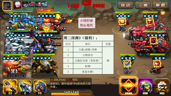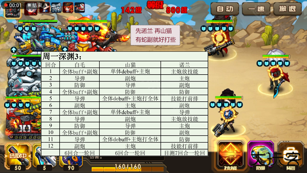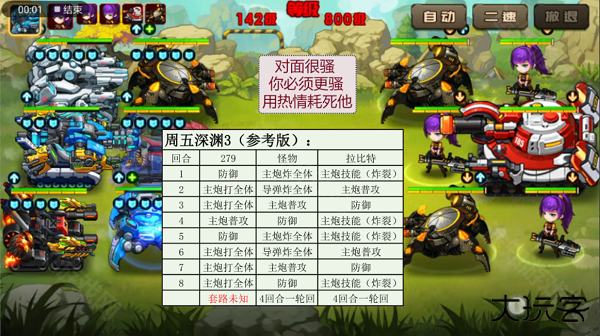 2、每人等级、阵容、改造都不一样,可以参考敌人每回合的攻击方式,多思考,多尝试,打造适合自己的战术;