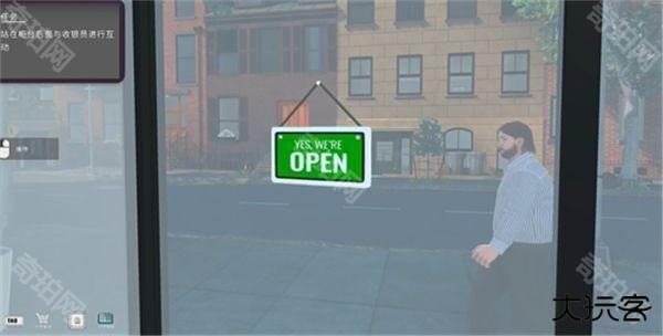 4、来到店铺门口,将牌子变为OPEN准备开店迎客。