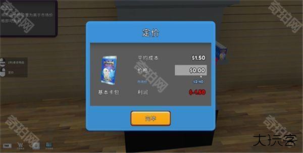 4、从一个基本的机架开始,建立一个引以为豪的卡片店。您可以订 购柜台和货架、创建商店名称、补货和收集卡片。