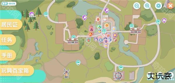 1、进入游戏后,点击屏幕右上方的菜单按钮,即可看见小镇的完整地图(看到图中的公交车标志了吗?那是真的可以传送的哦);