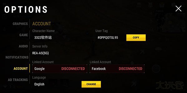 3、点击左侧的【ACCOUNT】类别,Language项就在下方。