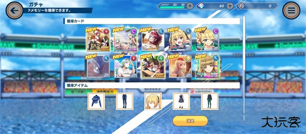 游戏里抽到角色之后还会一同赠送角色的服装,在专门的换衣间就可以为喜欢的角色选择不同的服饰了。