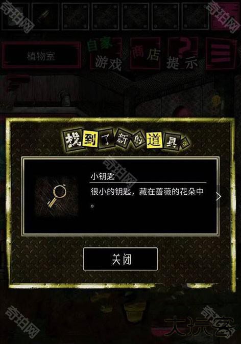 10.回到植物室,用手电照一下花,获得道具“钥匙”