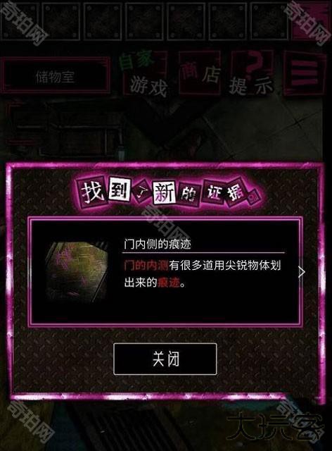 5.检查一下储物室的门,获得证据