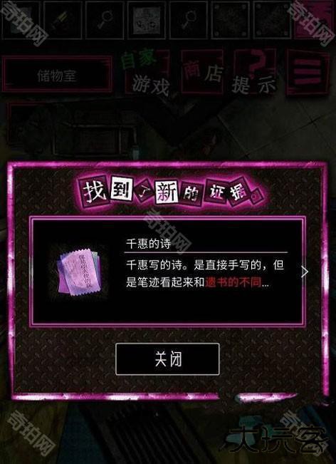 14.去储物室,拿小钥匙开第二个盒子,获得证据“字迹”