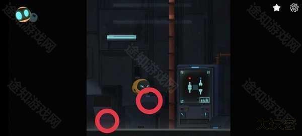 第三关,关掉电源,像图一一样关掉这个位置电源,脚下踩得箱子是从左下角画圈那里拿的( 截图时已经关了这边电源了。