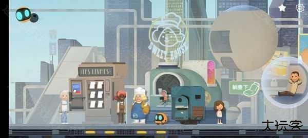 第一关,进入大都市之后,先走到最右边,会有一个门,尝试一下打不开,这时候再回去找那个在球球里面的人,他就会给你提要求,要关于猫的杂志和冰淇淋。