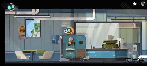 4.出餐厅之后直接往右边走,绿色机器人自然会跟着你。进入船。进去之后看到左边有一个洞里有钥匙,走过去把易拉罐扔进洞里,绿色机器人吸易拉罐的时候会把钥匙带出来。