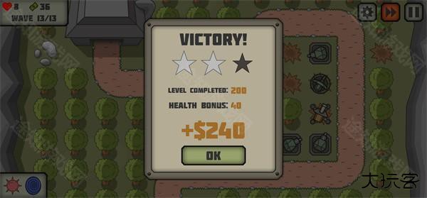 7、每一个关卡都有着大量的波数,在血量消失之前成功抵御敌人的进攻即可获得游戏胜利;