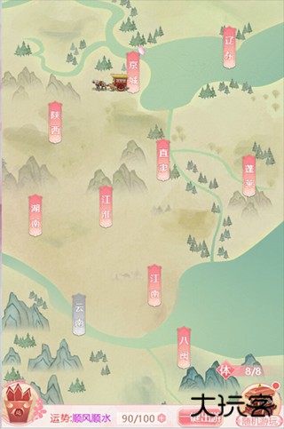 游玩分别有京城、直隶、辽东、江淮、江南、陕西、湖南、云南、八闽、蓬莱十个区域,除京城外其他区域需要小主的等级达到要求才可以解锁哦、当区域可以解锁时,可以点击消耗一定的资源解锁该区域。
