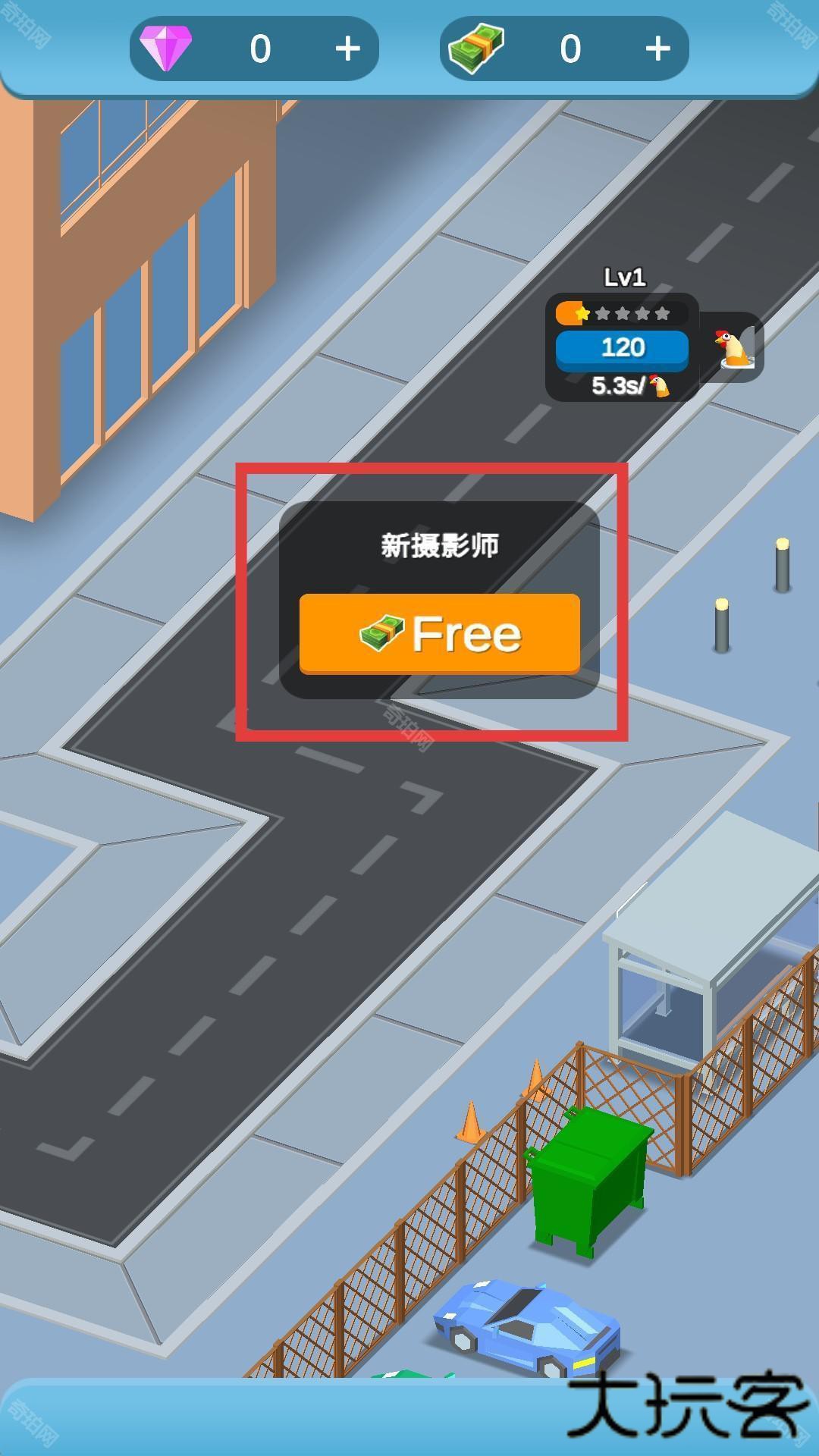 1、首先进入游戏主界面,会看到道路场景及相关提示,如新摄影师标识,点击橙色的Free按钮,可能会解锁新的游戏元素或奖励,助力游戏进程。