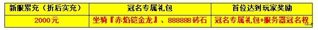 ②每个区服折扣后实际付费2000元以上,可以获得区服冠名+冠名礼包(含绝版专属坐骑:赤焰铠金龙)