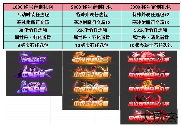 3、单日充值达到3000RMB可申请定制专属游戏称号(限定2-8字以内),由客服核对金额后发起申请