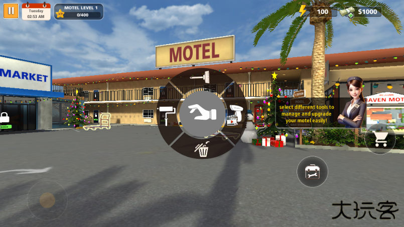 汽车超市模拟器是一款模拟开汽车旅馆的经营游戏。玩家可以为来往的客人服务,提供加油,洗车,食物,我们有多个板块可以丰富自己的业务能力。提供足够多的燃油补给,住客房间的安排,超市的食物丰富度。游戏还有天气系统,真实性直接拉满。积累更多的资金,让自己的店铺不断升级。