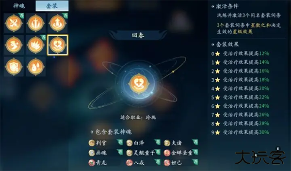 2、回春为玲珑职业的核心神魂之一。鉴于该职业在战斗中易成为首要攻击目标,此神魂提供的受治疗效果提升效果显著强化了其生存能力。无论是在副本还是 PVP 场景中,均能大幅提升玲珑的持续抗击打与续航恢复能力。此神魂具备高性价比,但仅推荐玲珑职业装备,其他职业选用价值较低。