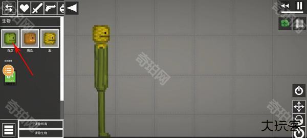 1、进入游戏之后,首先我们需要创建一个生物人,在左上角找到爱心图标点击,然后在西瓜、南瓜、玉中选择一个生物人;