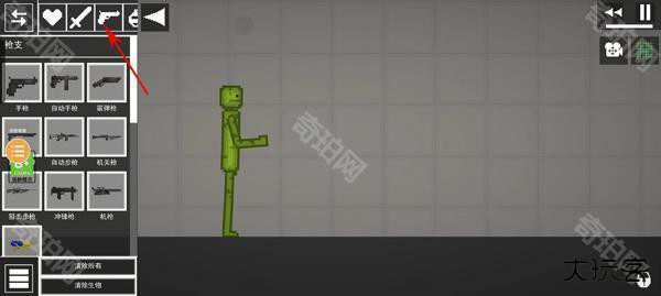 4、胳膊停住在空中停住之后,我们需要在左上角选择械图标去选择械;