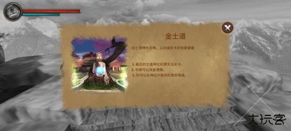 3、看到道路上有宝箱一定要拾取,因为内置的护符它能为你的大剑增加更为强大的战斗力,甚至还能在技能页面升级护符的时间。
